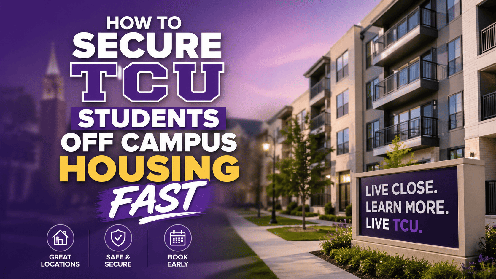 Purple Housing was created to make finding off-campus housing easier for TCU students. The creator of purple housing, a TCU student himself, recognized that TCU students didn't have an easy or efficient way to find Off-Campus Housing. It either involved driving around and calling off of rent signs or looking on Zillow and finding out that the house was available now, not for the June-August lease start dates that students start looking for as early as September.